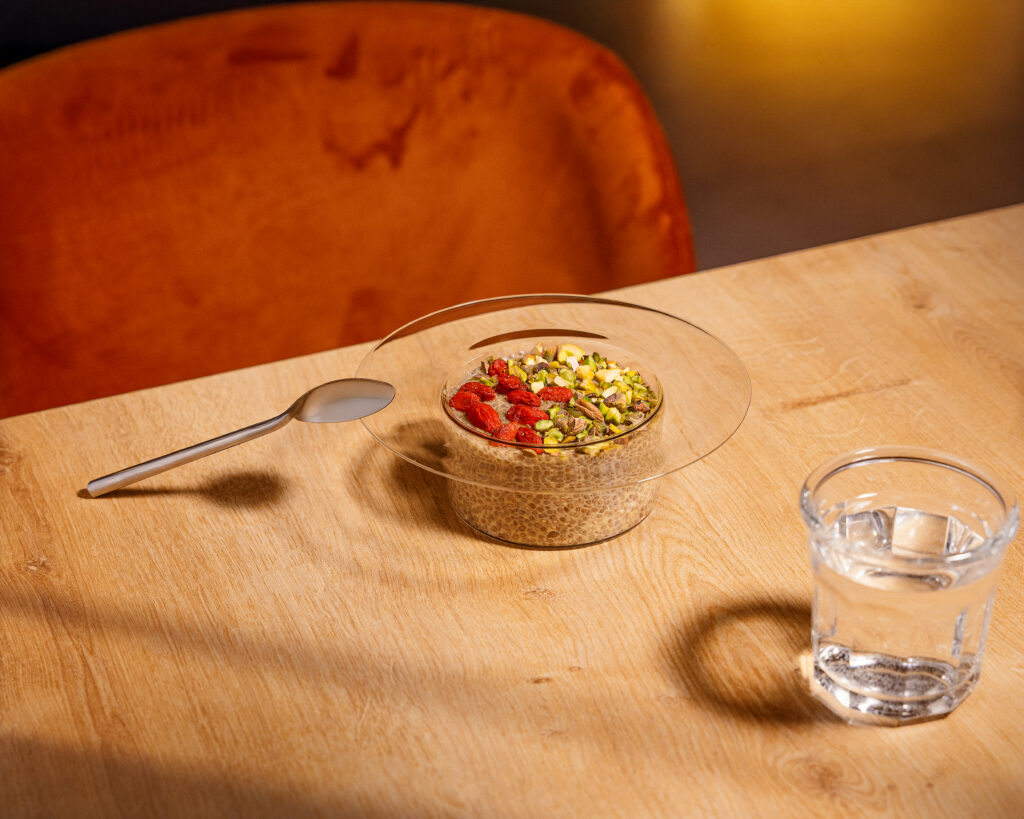Iaurt fin, semințe de chia și proteine naturale. Ușor, hrănitor și plin de energie.