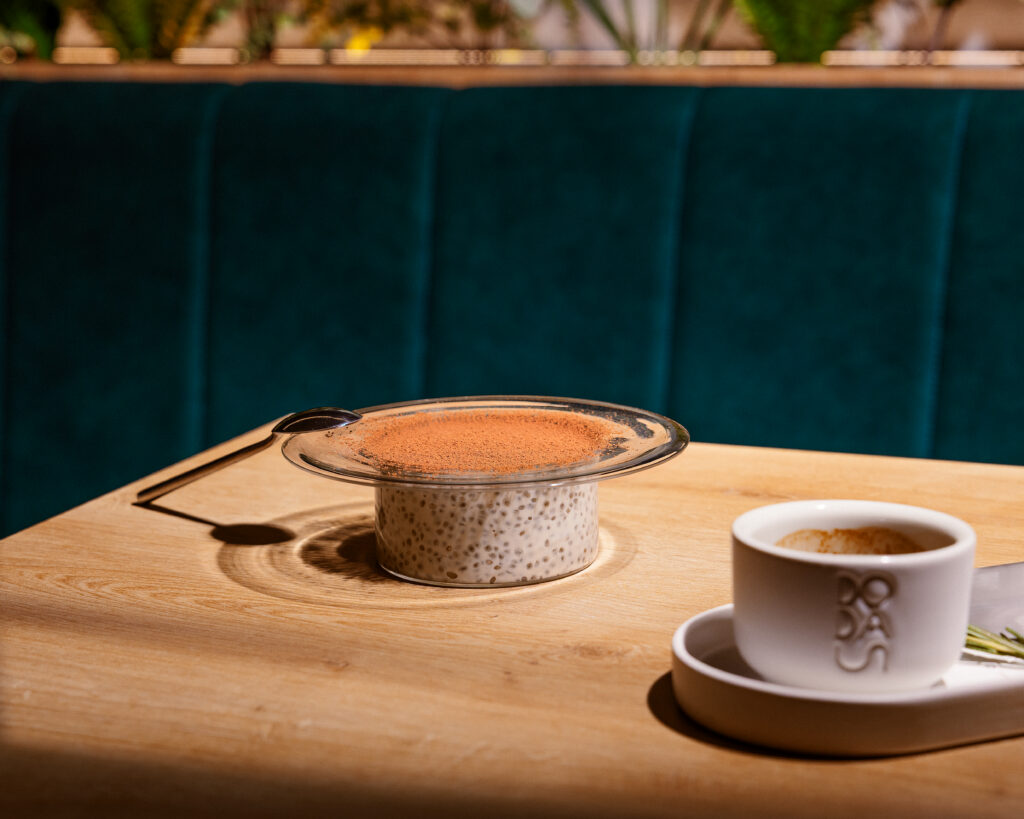 Totally guilt-free desert - Tiramisu reinterpretat într-o budincă de chia cu maxim de proteine. Echilibrat, sățios.