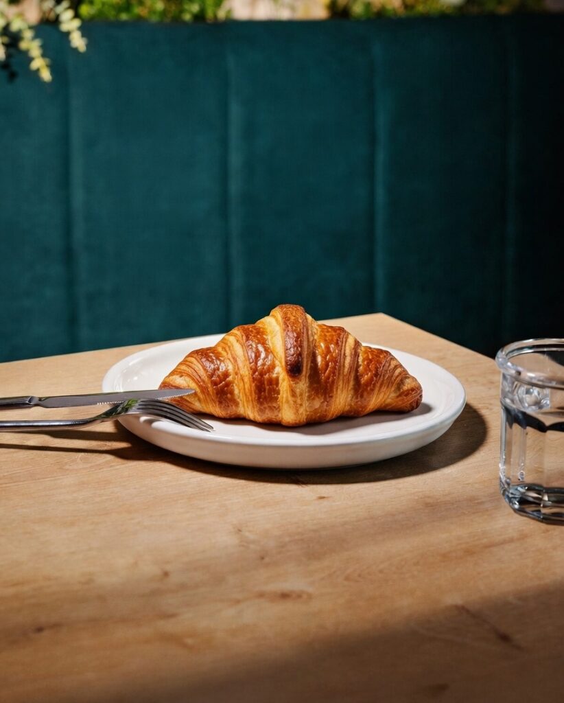 Croissant cu unt, camembert, mortadella și gem de smochine… Crocant, sărat, dulce, totul într-o mușcătură. Alege cald sau rece.